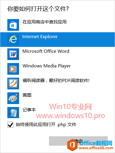 如何让Win10打开未知类型文件时不再显示“在应用商店中查找应用”