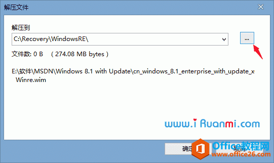 上图(点击可看大图):选中winre.wim文件,点击上方的“解压到”,出现下图对话框,将路径更改为C:\Recovery\WindowsRE,点击“确定”开始复制。