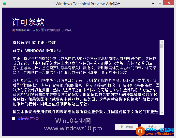 勾选“我接受许可条款”,然后点击“接受”,安装程序接着就会检查并获取更新。如图: