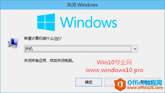 点击“关闭Windows10”选项之后,就会弹出如图所示的“关闭Windows”对话框。