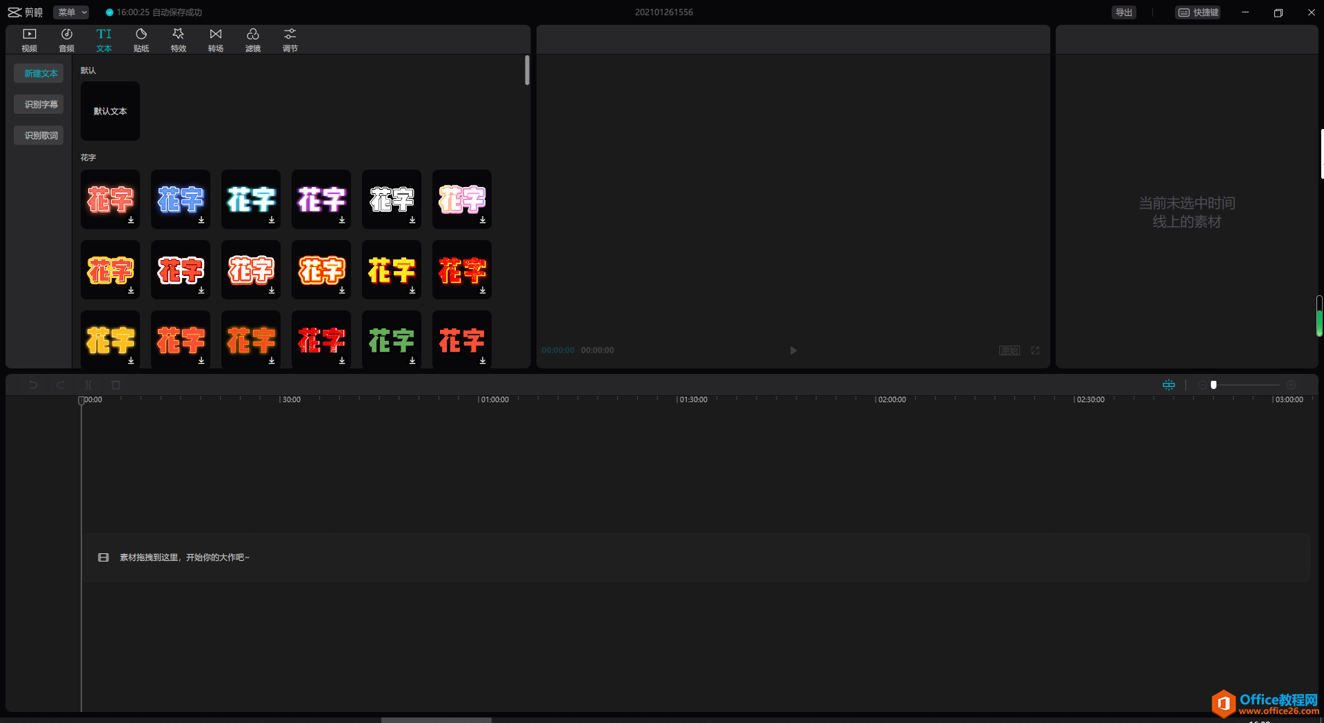 2、文本功能提供了语音识别人声,这个对于解说类的视频剪辑者实在是最实用的功能了,文本还有默认很多样式可供选择。