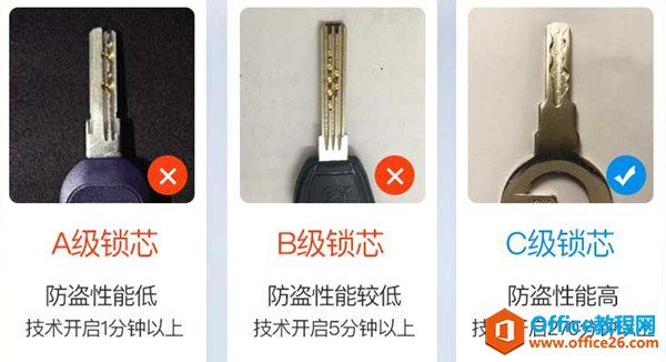 指纹锁的锁芯就是装有钥匙孔的东西,用户使用钥匙孔插入锁芯,然后经过传动把指纹锁的锁舌收回,从而达到开门的目的。而真假锁芯是关系到质量问题的,假冒伪劣的锁芯叫做假锁芯,质量合格有保证的锁芯叫做真锁芯。而对锁芯而言,人们更多的是讨论它的等级。C级锁芯防技术开锁时间长达270多分钟,而B级锁芯为5-10分钟,最多不超过半小时,至于A级锁芯在指纹锁中是没有使用的,大多在老式机械锁中。[指纹锁B级锁芯和C级锁芯有什么区别]