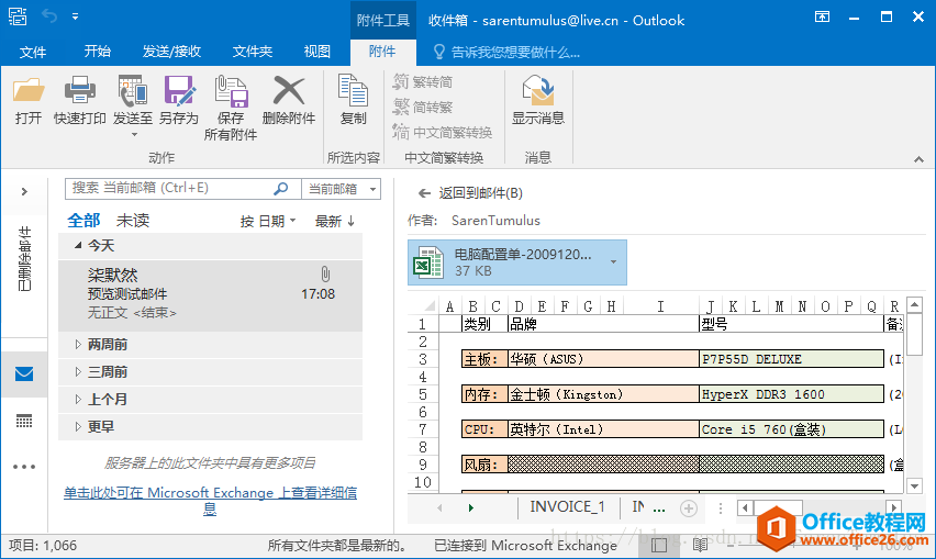 现在,可以看到对应的附件预览程序已经可以正确启动并显示Excel文档内容了,问题解决。