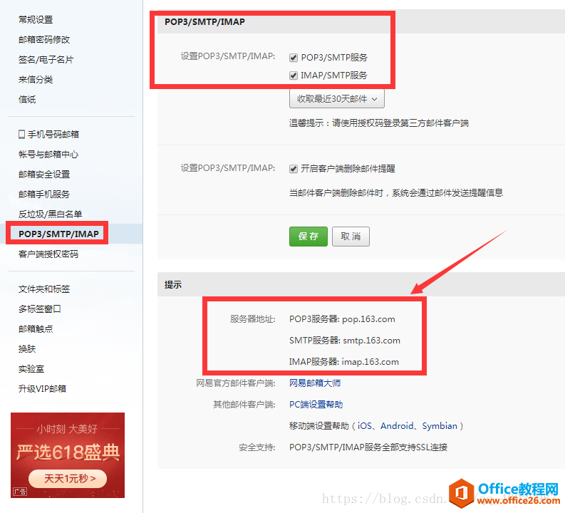 (2)点击POP3/SMTP/IMAP,找到服务器地址。