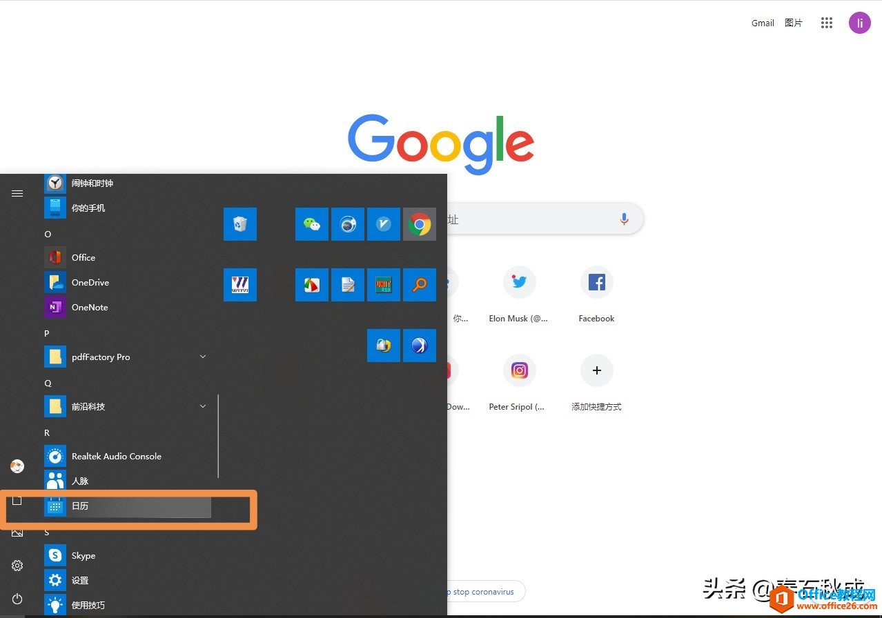 1、进入电脑“开始菜单”,找到”日历“服务并进入;