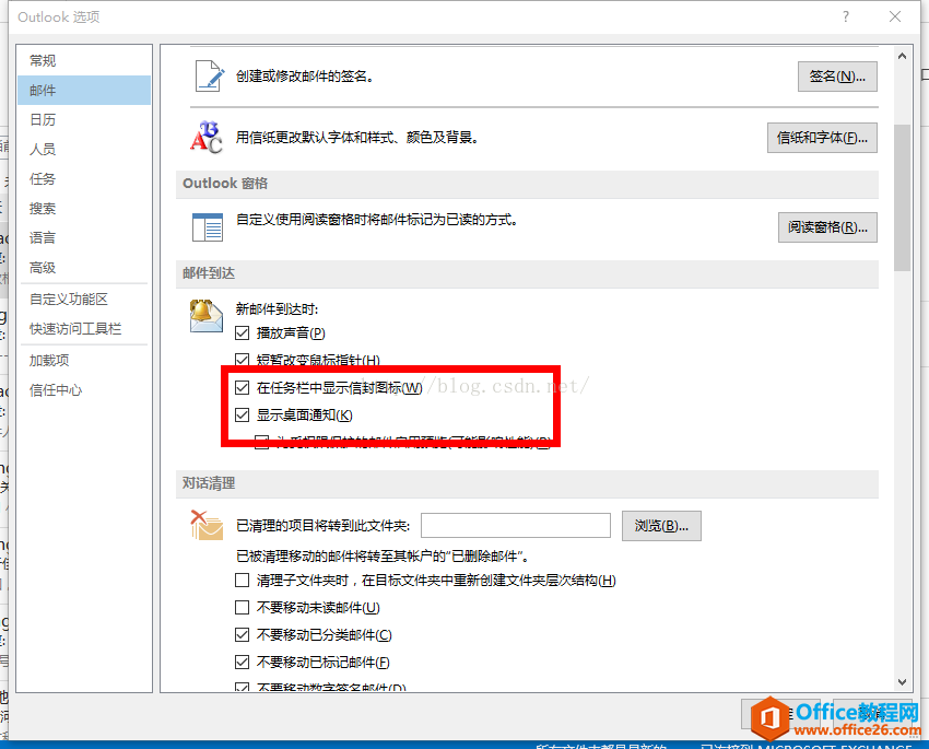 :勾选"在任务栏中显示信封图标"/"显示桌面通知"
