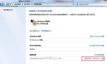 2,手动编辑outlook对应的“普通凭据”中的密码,保存即可。详情请查看如下截图。