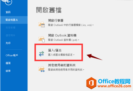 接着我们点击‘开启和汇出’后,会弹出扩展画面,在点击‘汇入汇出’,也就是邮件的还原加载和邮件的备份。