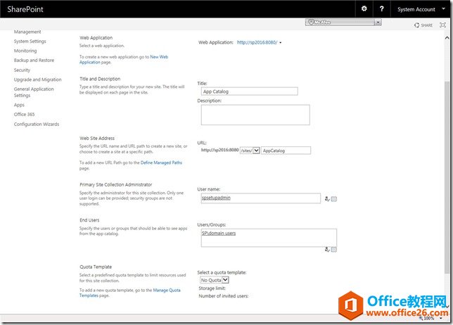 18、添加应用程序目录的站点信息,当然,如果你已经有应用程序目录类型的站点,直接绑定也是可以的;