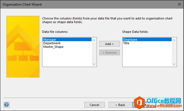 Visio将组合名称和名字字段以生成员工的全名。单击“下一步”继续。