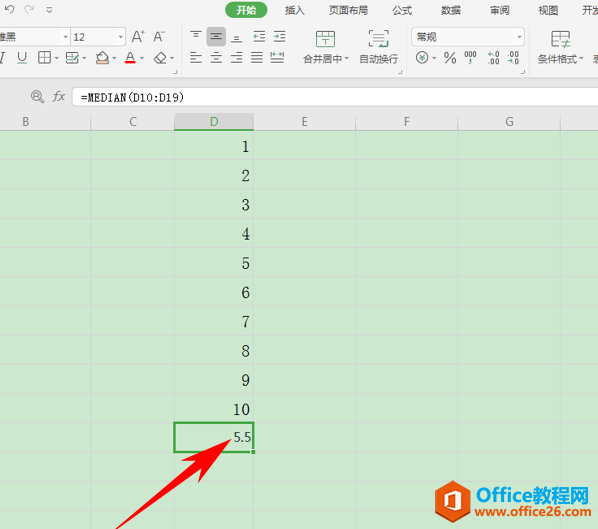 单击回车后,我们看到该列的中位数就已经计算出来了,为5.5,经过验证,结果正确。