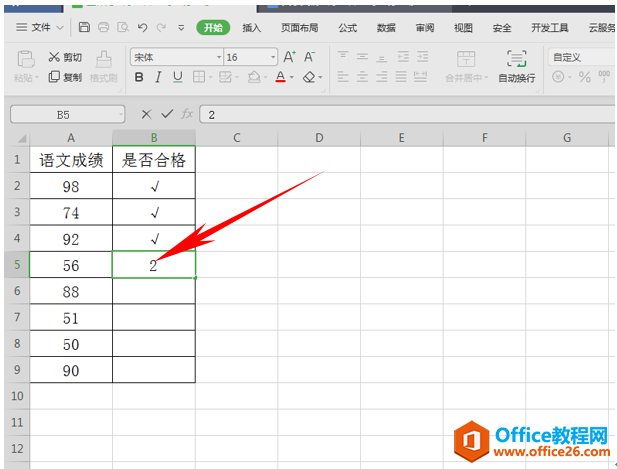 然后再试一下错号,在单元格当中输入2,单击回车。