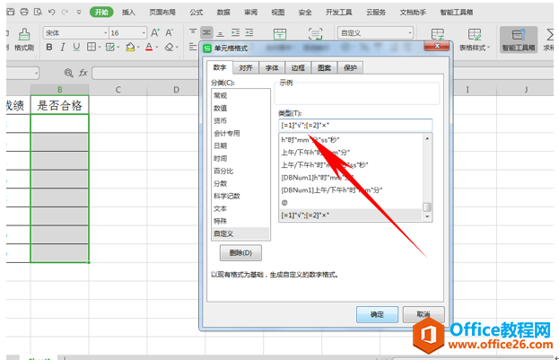 弹出单元格格式对话框,在分类里选择自定义,然后在类型里输入公式[=1]”√”;[=2]”×”,单击确定。