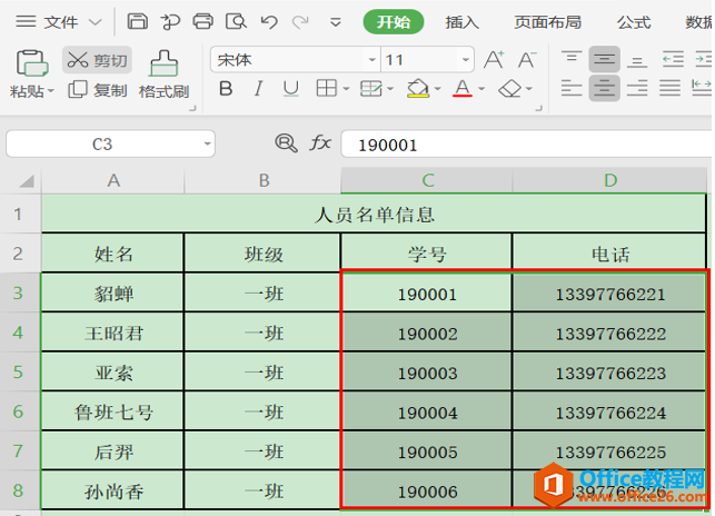 确定后观察所处理的单元格区域,C3,D8都被隐藏了,如图所示: