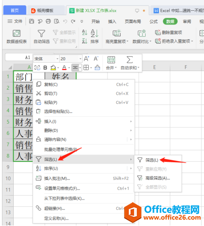 此第二步也可选中表格后,右键单击,选择【筛选】中的【筛选】: