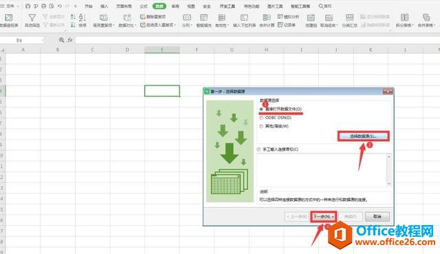 在弹出的对话框中,选择【直接打开数据文件】,接着点选【选择数据源】: