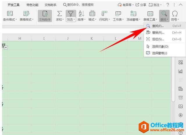 还有一种方法,单击工具栏【开始】下的【查找】,在下拉菜单下选择查找: