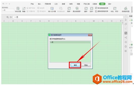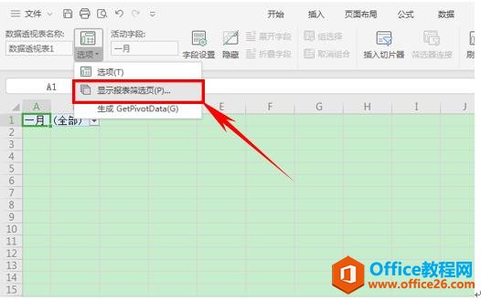 然后单击工具栏当中的选项,在选项下选择显示报表筛选页。