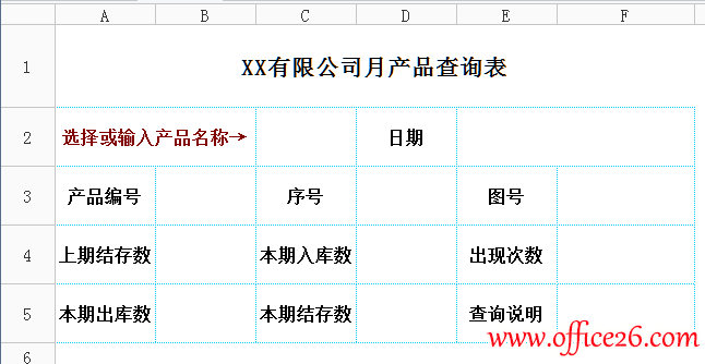 为了查询方便,首先新建一个工作表,命名为“库存查询与打印”,然后根据自己的需要来设计一下查询器的表格样式。
