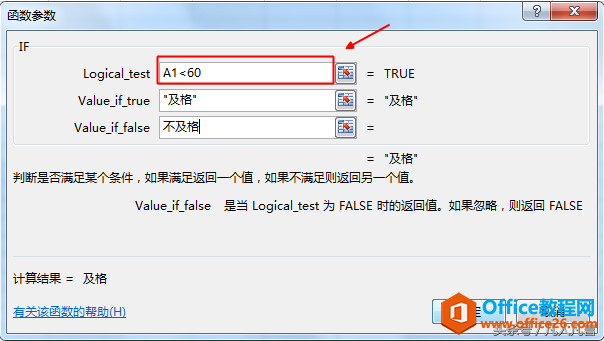 第四步:在逻辑值中输入A1<60