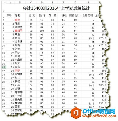 4. 将行标签改名为【姓名】,选中列标题,CTRL+F调出替换对话框,将”求和项:”替换为空,注意这里必须要输入一个空格,否则你替换不掉。将总分2改名为【排名】。