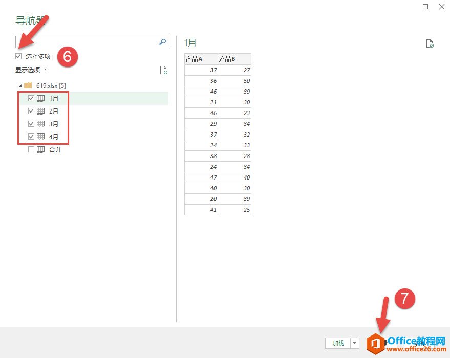 接着点击下图6处,勾选选择多项,然后打勾1-4月的表,然后点编辑。下图7处。