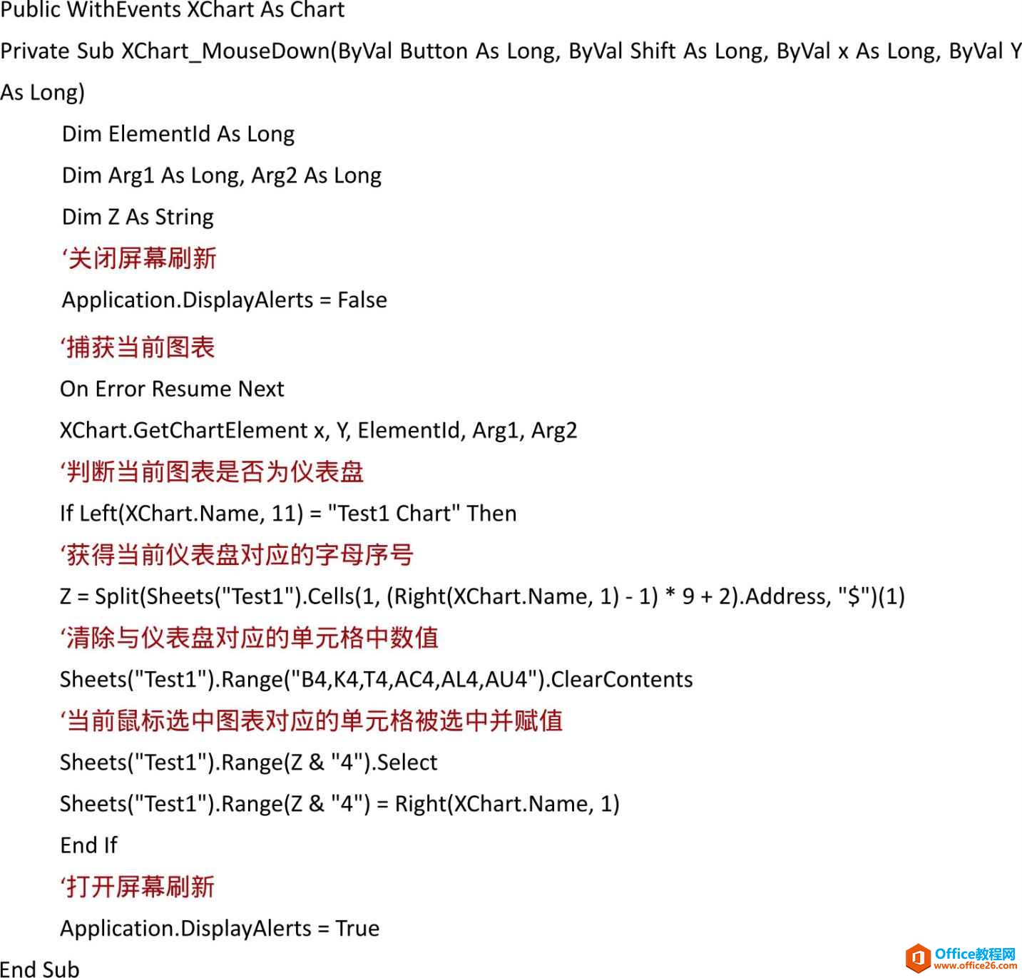 程序代码:15.3-2 模块1中的XChart_MouseDown 将仪表盘和类模块关联