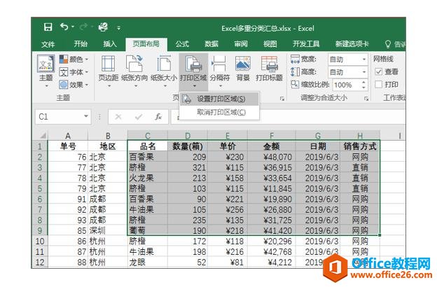 在【在页面布局】选项卡中设置打印区域