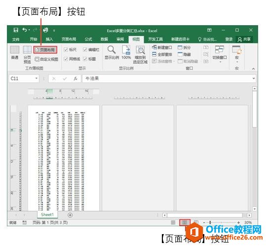- 【页面布局】:进入【页面布局】视图模式。