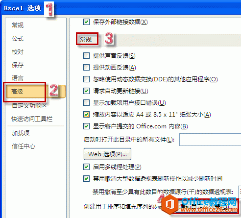 1. 单击文件→选项→高级→常规→单击“编辑自定义列表”按钮。如下图所示: