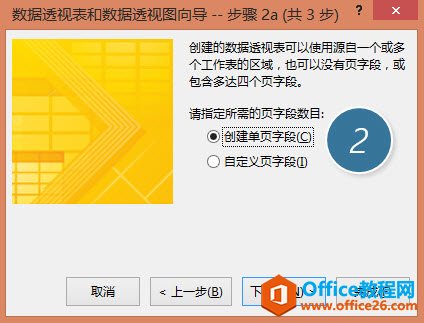 数据整理之后,需要进入数据透视表向导,Excel2007以上版本面板上都没有向导的点击按钮(可以从选项里面调入),这次我们用快捷键打开。按住alt键,再按D,再按P,即可打开数据透视表向导界面。选择“多重合并计算数据区域”选项(下图1处),然后点击“下一步”。