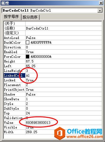 弹出属性对话框 ,在“LinkedCell”属性右侧输入单元格地址,此处为“A1”,回车后可以看到其“Value”属性变成了A1单元格中的数值。