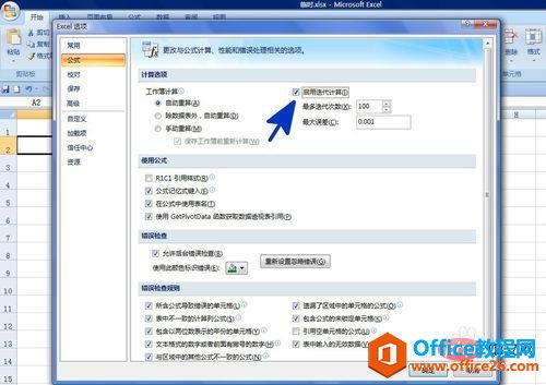 4、在对话框的左边选择【公式】选项,右边在【计算选项】中勾选[启用迭代计算]功能。