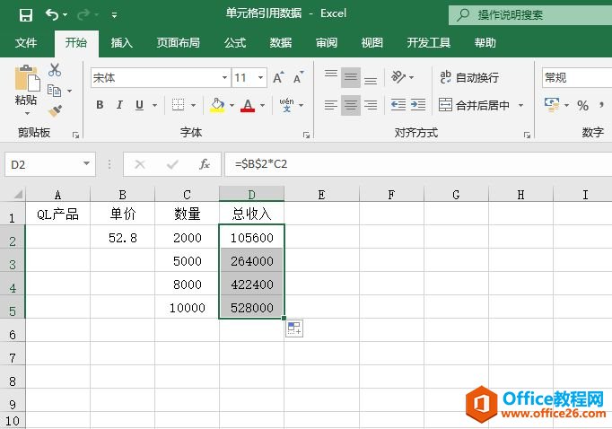 单元格的绝对引用指的是把公式复制或移动到其他位置时,公式中的固定单元格地址保持不变。如果要对单元格采用绝对引用的方式,则需要使用“$”符号为标识。接下来还是通过一个案例说明如何对单元格进行绝对引用。