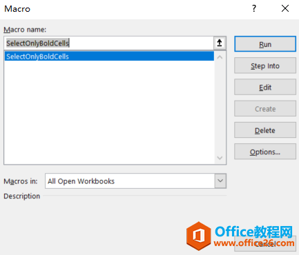 您还可以使用Excel VBA宏来在给定单元格范围内选中所有粗体单元格。只需执行以下步骤: