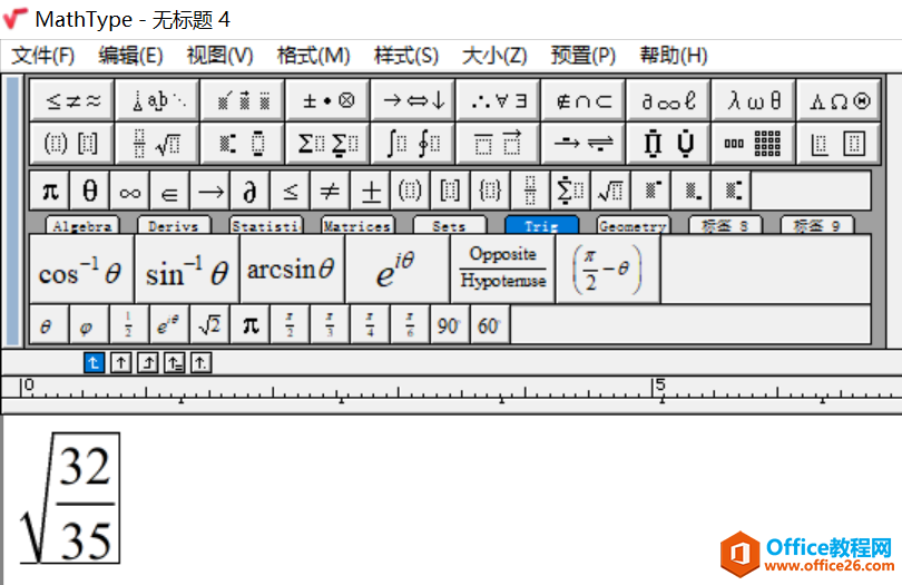 很多符号的输入,光标位置的不同,呈现的方式也会不相同。例如使用根号符号时,光标离上方的横线较远时,代表继续输入的数据是在根号之下的。
