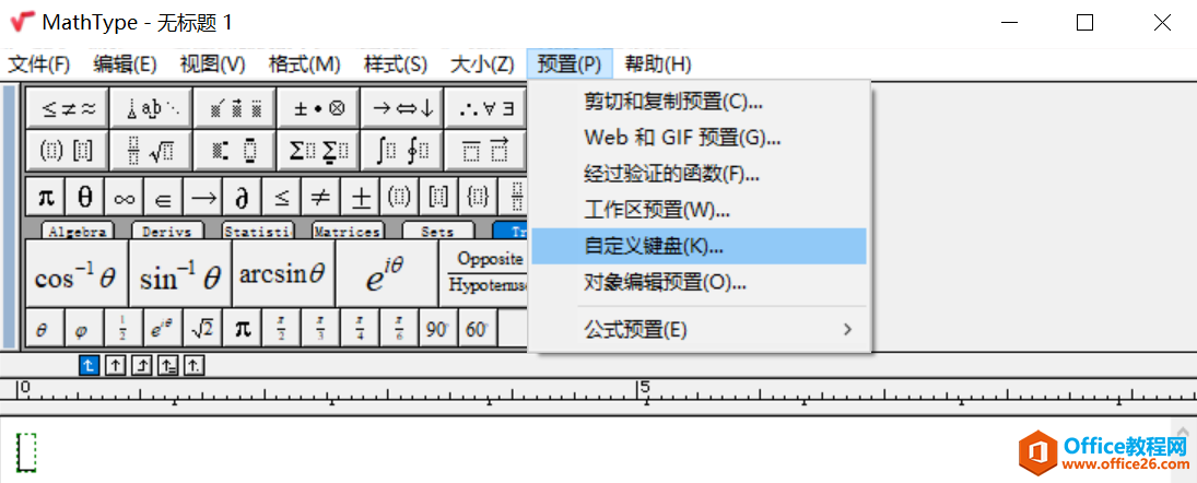 对于快捷键的查询,点击预置菜单栏中的自定义键盘。