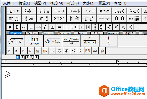MathType不仅可以编辑出来很多的代数符号跟几何符号,很多描述性的符号和一些逻辑性的符号也是可以编辑的,数学中不只是有计算公式而已,对于每个公式也会有大小等于这些关系,利用这些公式之间的关系才能更深入的推理与研究。下面就介绍公式编辑器输入大于等于号的两种方法。