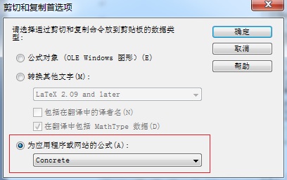 1.从MathType “选项”菜单中选择“剪切和复制选项”。