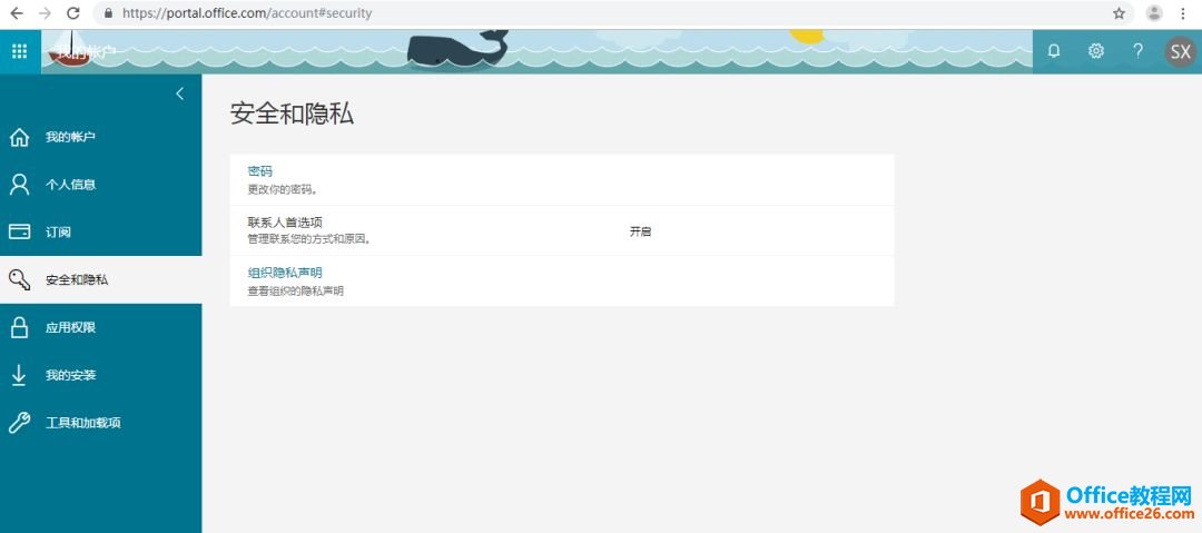 6、在“订阅”选面中,许可证,可以看到您没有许可证,可将Office365与您的工作单位或学校分配,给您的用户ID一起使用,请您的管理员为您分配一个。如果您是管理员,您可以为您的帐户分配一个。