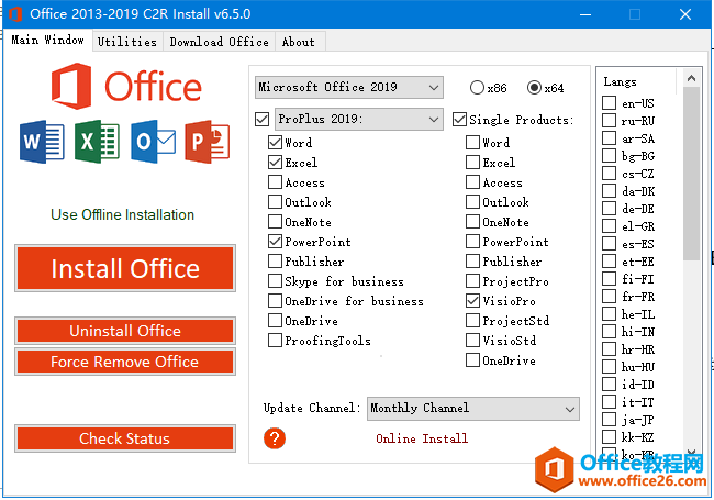 Office 2013-2019 C2R Install是由俄罗斯人Ratiborus制作的Microsoft Office下载、安装、管理的自定义部署工具。它可以在线下载安装 Office 2013-2019 的各个版本,离线安装部署Office镜像,自定义安装Office产品组件,KMS激活Office支持Office零售版转换批量许可版,在线KMS激活Office,可选内置Office密钥许可证安装。