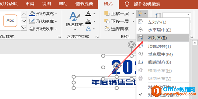 第四步:绘制文本框输入下方标题文字,同样调整字体,大小等,调整后,按SHIFT键+鼠标加选两个文本框后,再通过【格式】—【对齐】—【右对齐】。