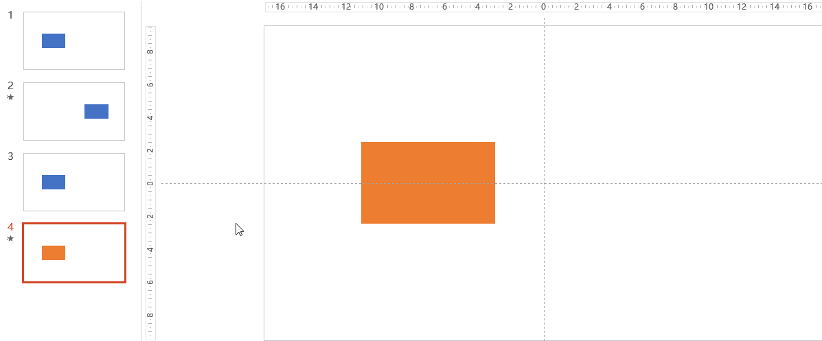 如我在第一页幻灯片上添加一个矩形,复制该幻灯片,再于第二张幻灯片中调整矩形的位置。