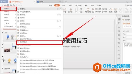 在文件打包下选择“将演示文档打包成压缩文件”。