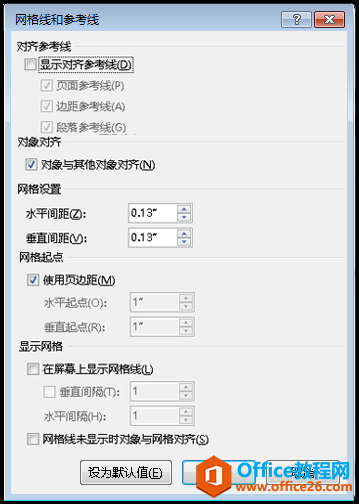 。随即将显示“网格和参考线”框。 注释 如果您想让“网格和参考线”对话框中的当前设置成为所有演示文稿的默认设置,请单击“设为默认值”。