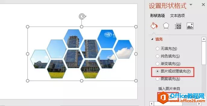 (3)选择SmartArt六边形中的小形状,按【Delete】键删除,再单击鼠标右键,在弹出的菜单中选择“设置形状格式”命令。