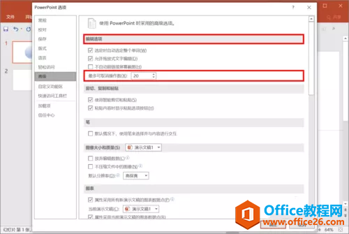 5、在右侧找到编辑选项下的最多可取消操作次数。