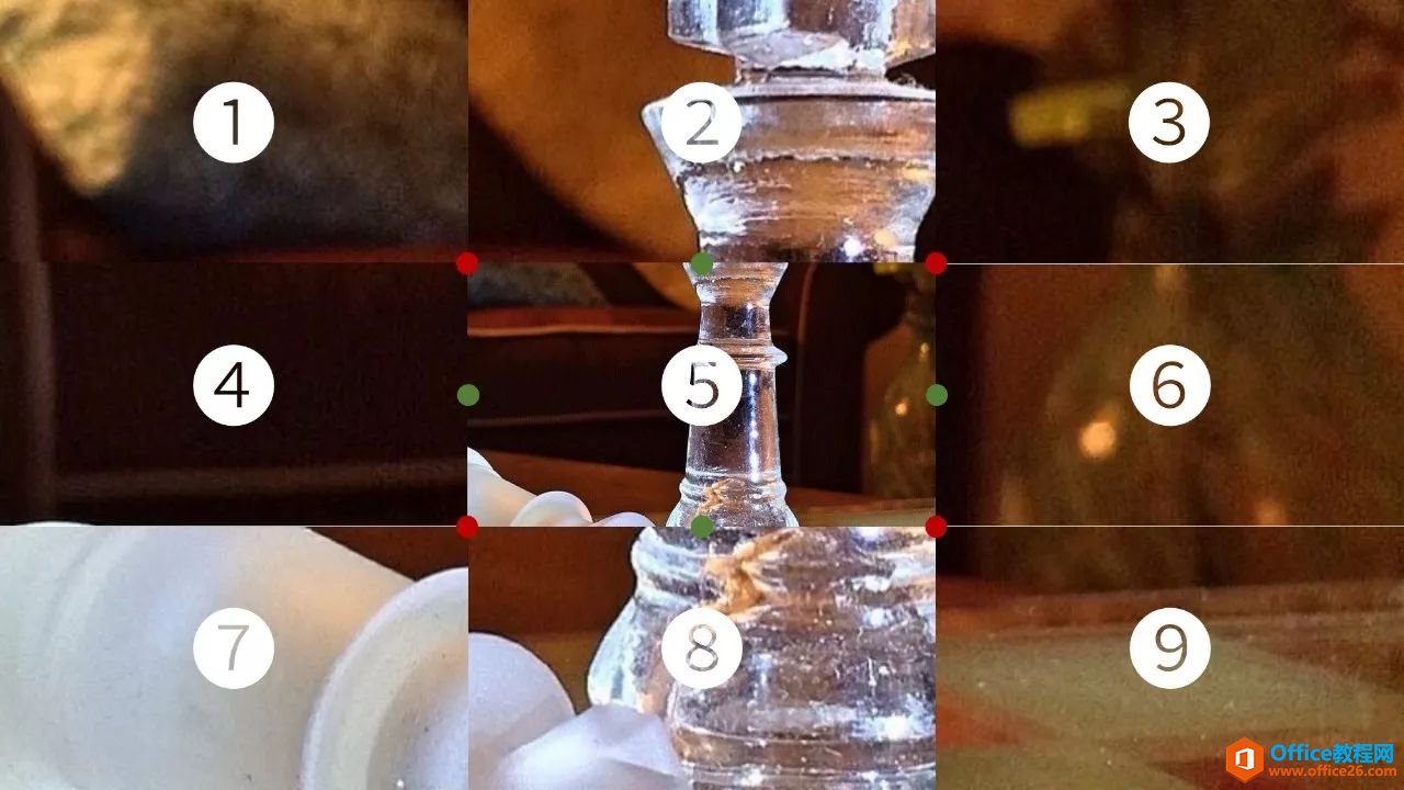 图中可见有九部分组成,每部分到最后会组成完整的一幅图,而在一开始的时候,分别放大或缩小了,而且缩放的中心并不一致。中间的图(图5)的缩放中心位于中心位置,四个对角上的图(......