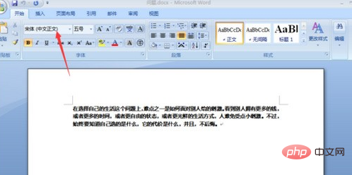3.点击文档左上字体和字号,出现下拉菜单,选中需要的字体和字号点击。