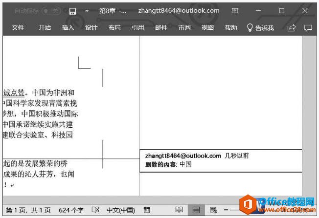 2、对文档进行编辑,文档中被修改的内容会以修订的方式显示,如图2所示。